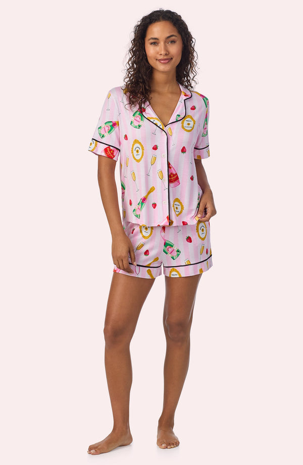 2-piece short pajama set with a bubbly champagne bottle print